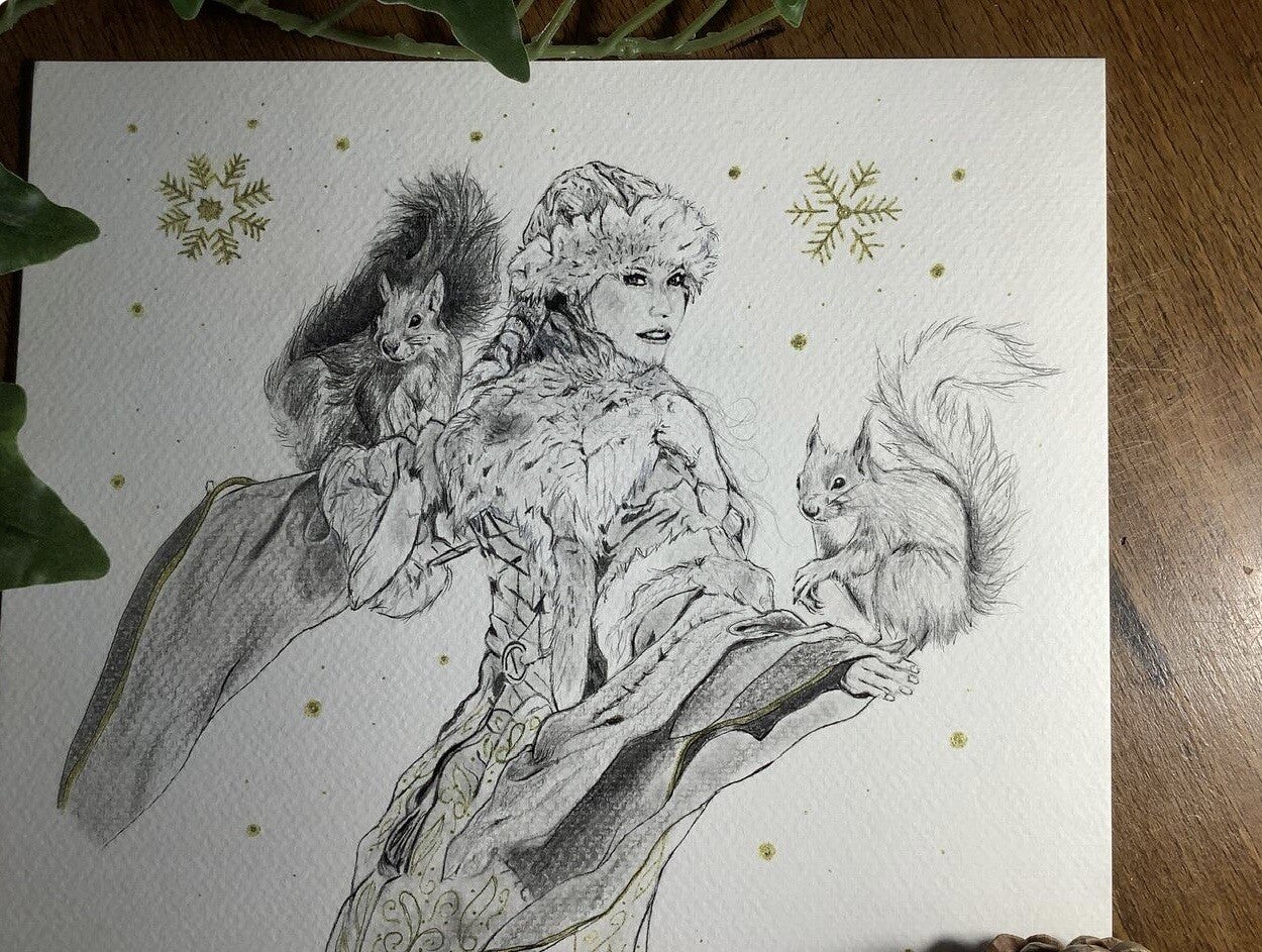 Illustration original * elle en hiver Fait au graphite Sur papier aquarelle blanc 300grFormat 25/25 cmFixatif pour la tenue du dessin