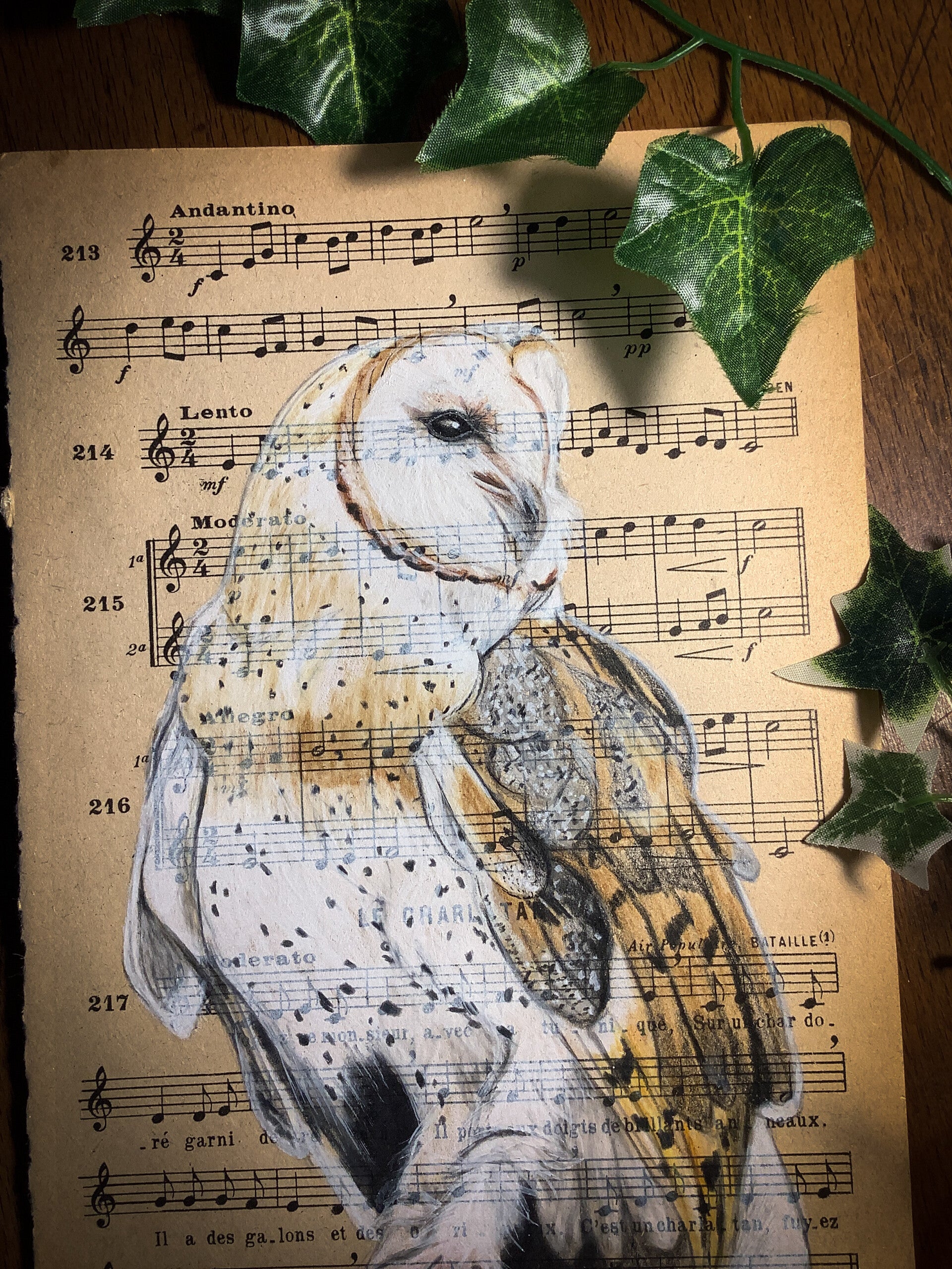 Illustration originale sur papier musique vintage